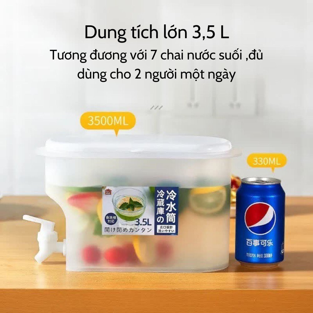 - Dung tích 3.5L thích hợp với mọi gia đình, chuẩn bị 1 bình nước hoa quả để trong tủ lạnh ko sợ nước hoa quả biến chất