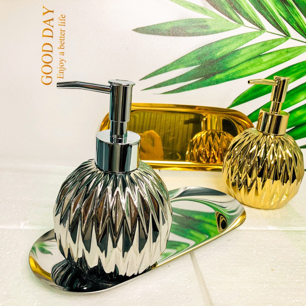 Bình Đựng Xà Phòng Nhà Tắm Gốm Sứ Cao Cấp Phủ Bóng 400ml