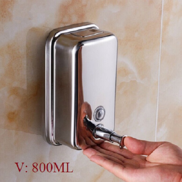 Bình đựng xà phòng nước rửa tay nhấn inox treo tường 800ml