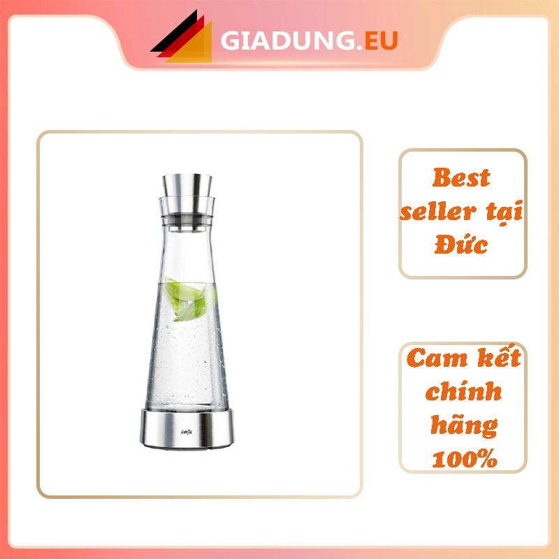 - Bình có dung tích 1 lít, nắp tự động đóng mở trong quá trình rót, chất liệu thủy tinh và inox an toàn tuyệt đối cho sức khỏe người dùng