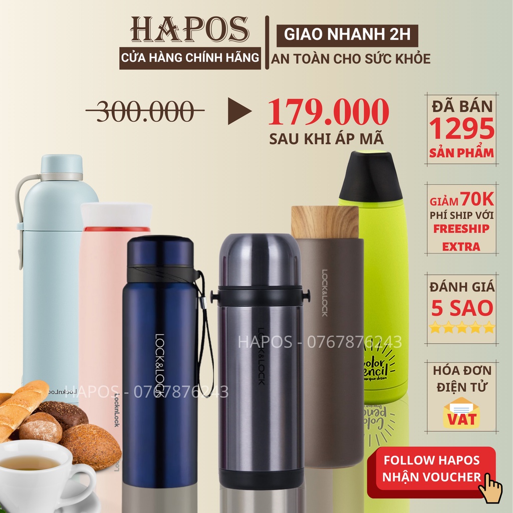 Giới thiệu Bình giữ nhiệt Lock&Lock mini 500ml - 1000ml, Bình đựng nước Lock and Lock chất liệu inox 304 - HAPOS
