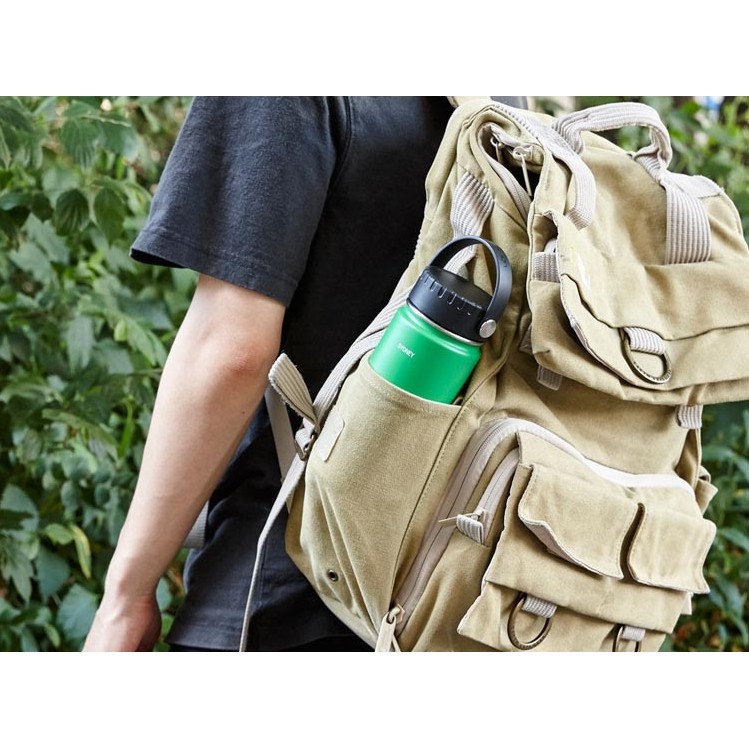 Thân bình dạng tròn cầm chắc tay, nắp có quai cầm chắc chắn giúp bạn dễ mang theo.