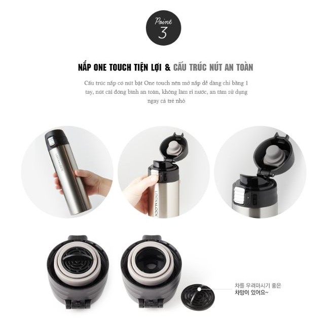 - Nắp One Touch tiện lợi và cấu trúc nút an toàn