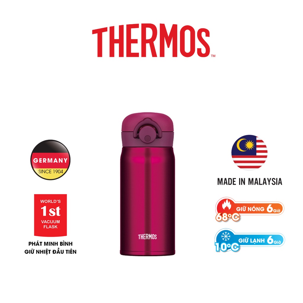 • Bình giữ nhiệt cao cấp Thermos sản xuất tại Malaysia, đạt tiêu chuẩn chất lượng gắt gao của Nhật Bản, được tin dùng tại hơn 120 quốc gia trên thế giới.• Bình giữ nhiệt cao cấp Thermos có nhiều màu sắc (đỏ, xanh, đen…), kích thước (350ml, 500ml, 750ml) phù hợp với nhiều phong cách đi học, đi làm, mục đích sử dụng khác nhau.