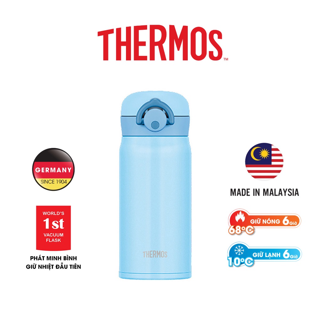 Bình giữ nhiệt số 1 Nhật Bản Thermos nút bấm 350ml. Trọng lượng siêu nhẹ, chất liệu thép không gỉ. Hàng chính hãng