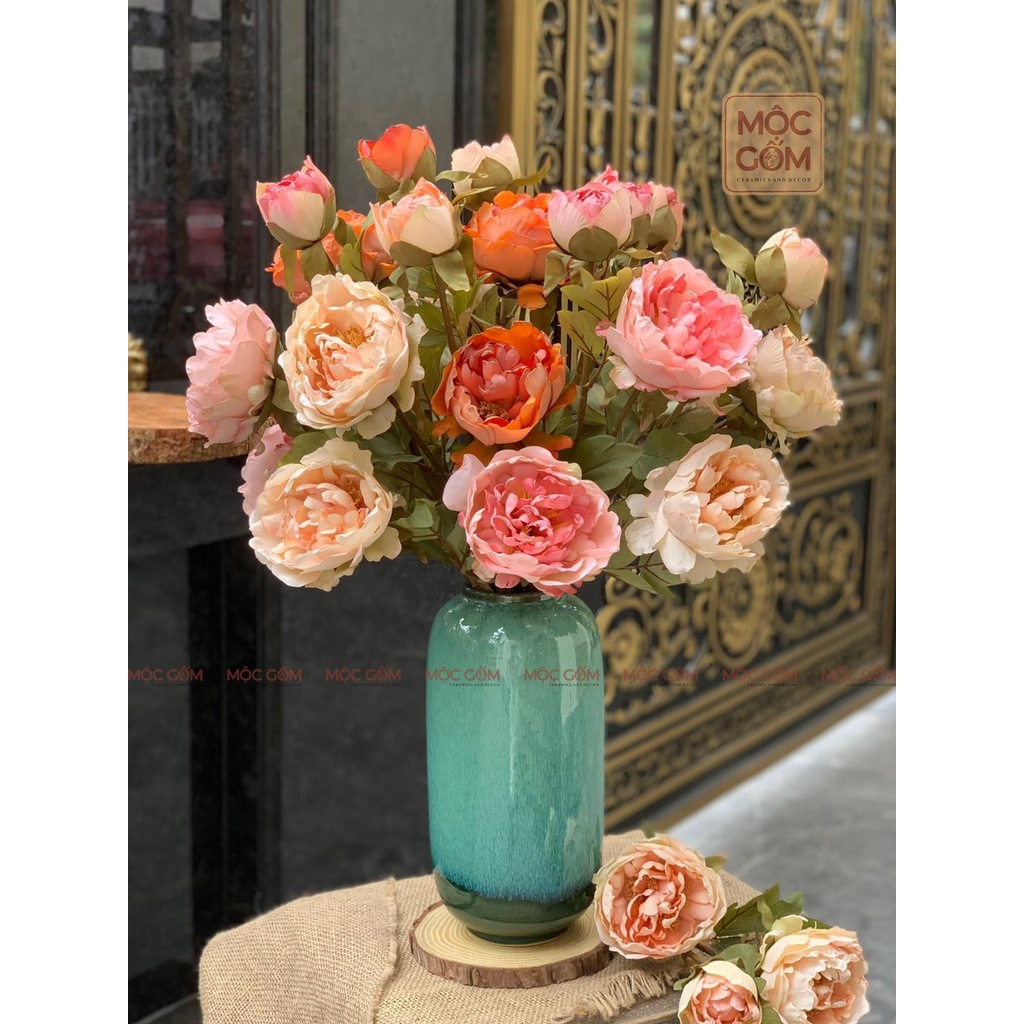Chiếc bình màu men xanh ngọc , gốm Bát Tràng cao cấp!Bình này cắm đào tròn, tuyết mai , thanh liễu, hoa hồng, mẫu đơn, loa kèn, phăng, cánh bướm... hoa màu gì vào với chiếc bình này cũng sẽ xinh hết sức ạ!