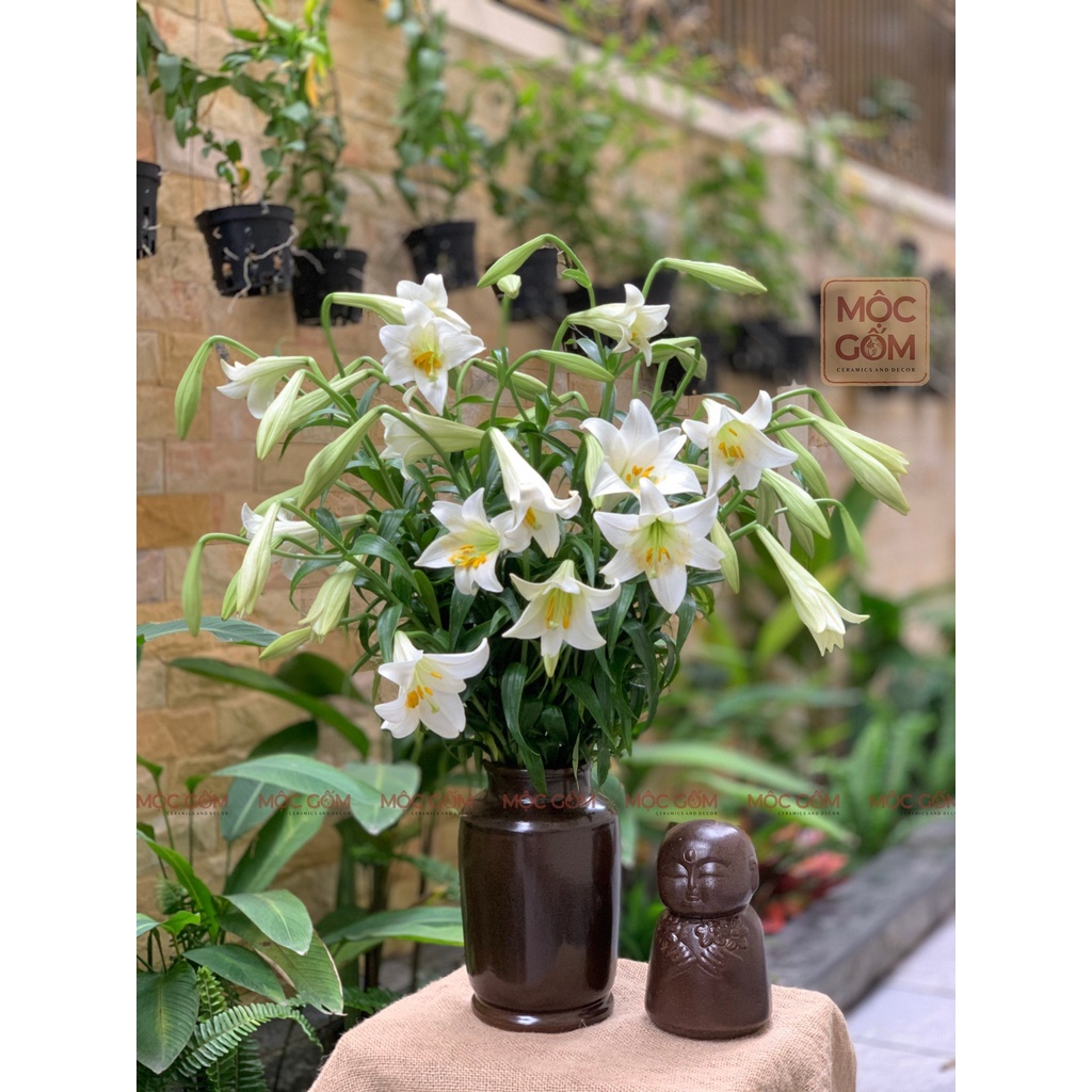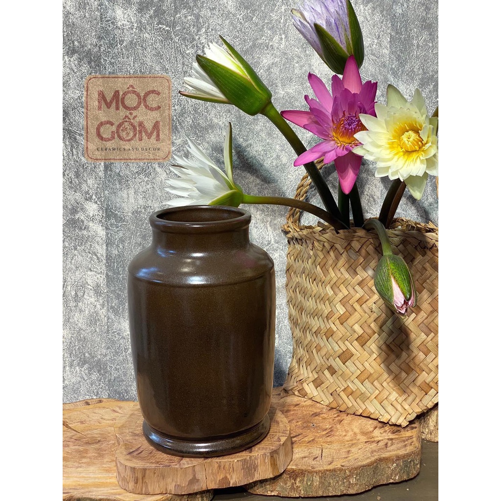 Giới thiệu Bình gốm Bát Tràng cắm hoa men mộc dáng trụ cổ cao trang trí đẹp Mộc Gốm MG70