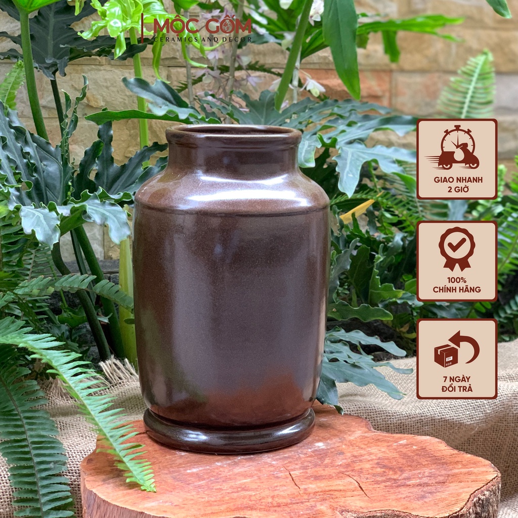 Bình gốm Bát Tràng cắm hoa men mộc dáng trụ cổ cao trang trí nội thất đẹpChiếc bình men mộc tone nâu trầm cực Tây với cốt gốm dày dặn, chắc chắn dáng trụ cơ bản dễ cắm được tất cả các loại hoa ạ!!!!!