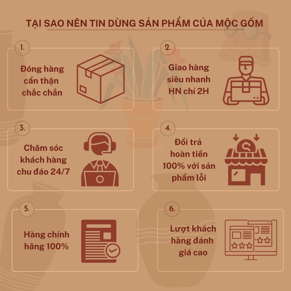 1. Khi nhận hàng khách hàng vui lòng dành ra chút thời gian quay video quá trình bóc hàng ạ, nếu xảy ra vỡ hỏng khi vận chuyển shop sẽ gửi bù sản phẩm mới và không thu thêm phí ạ