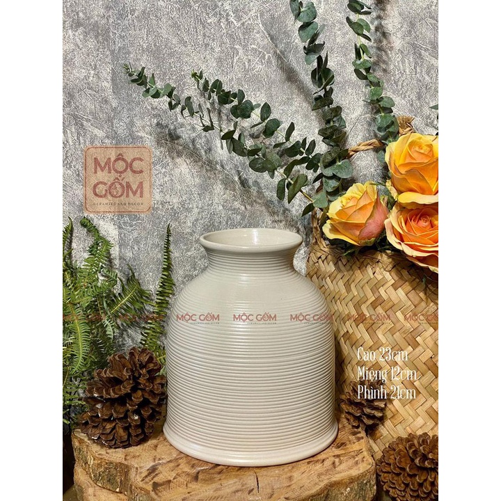 Nhà cửa & Đời sống > Trang trí nhà cửa > Bình trang trí || Bình gốm Bát Tràng cắm hoa dáng đầm thân ganh nổi men trắng lỳ trang trí phòng khách đẹp cao cấp Mộc Gốm MG76Còn hàng