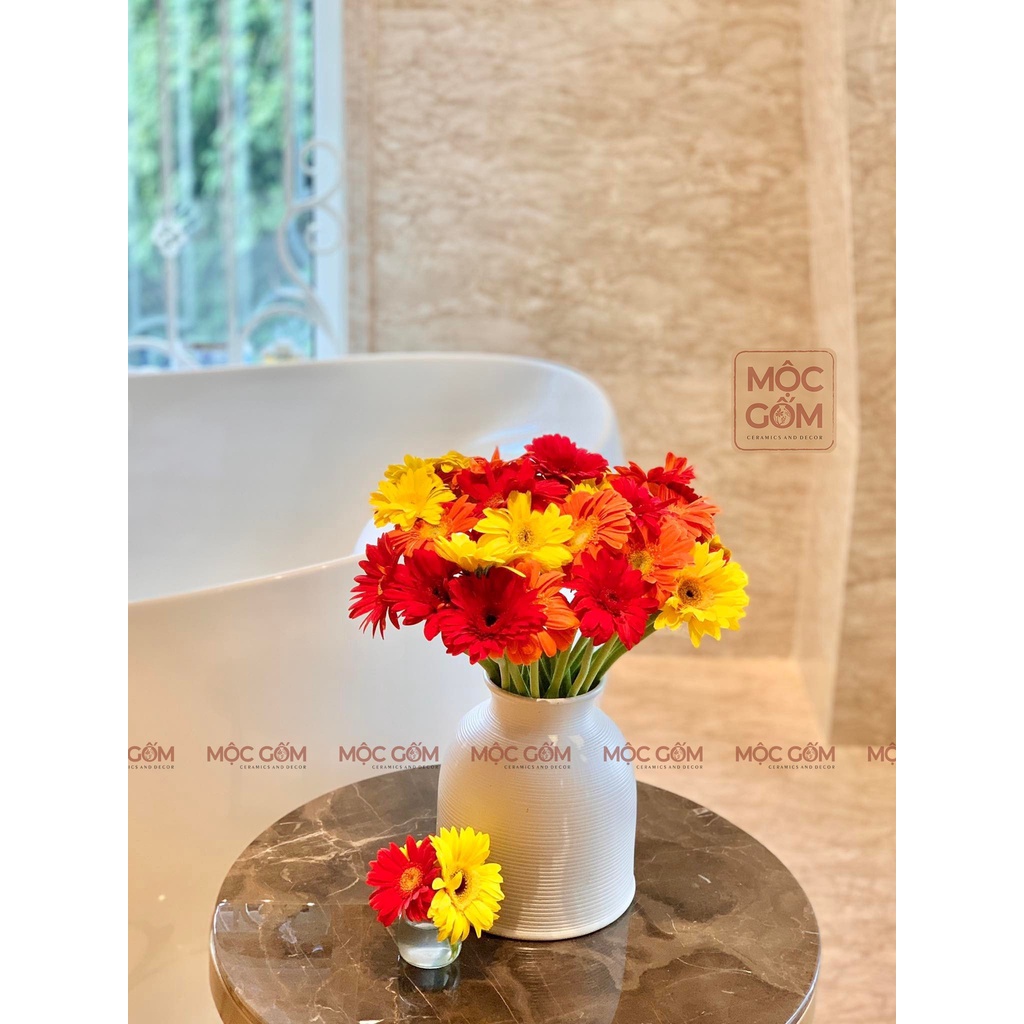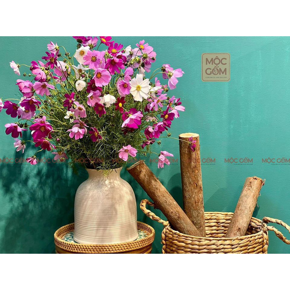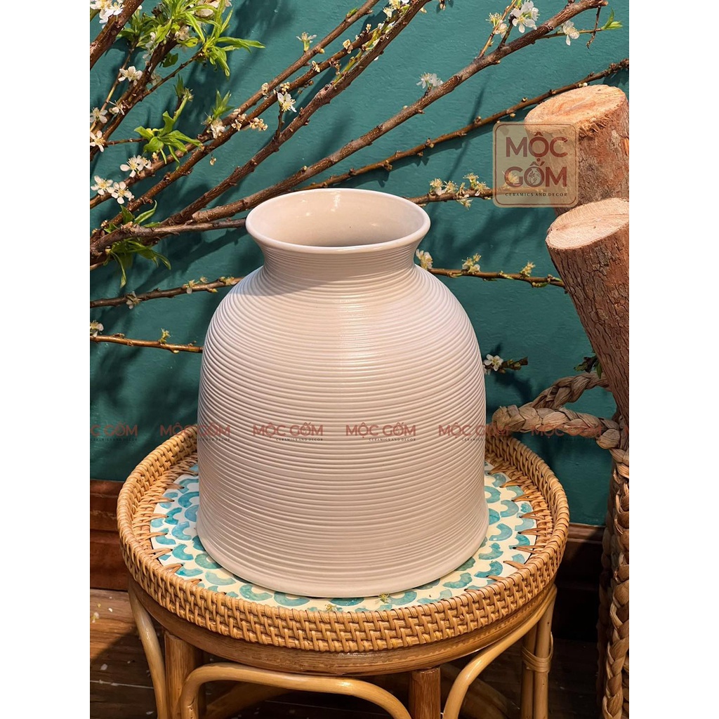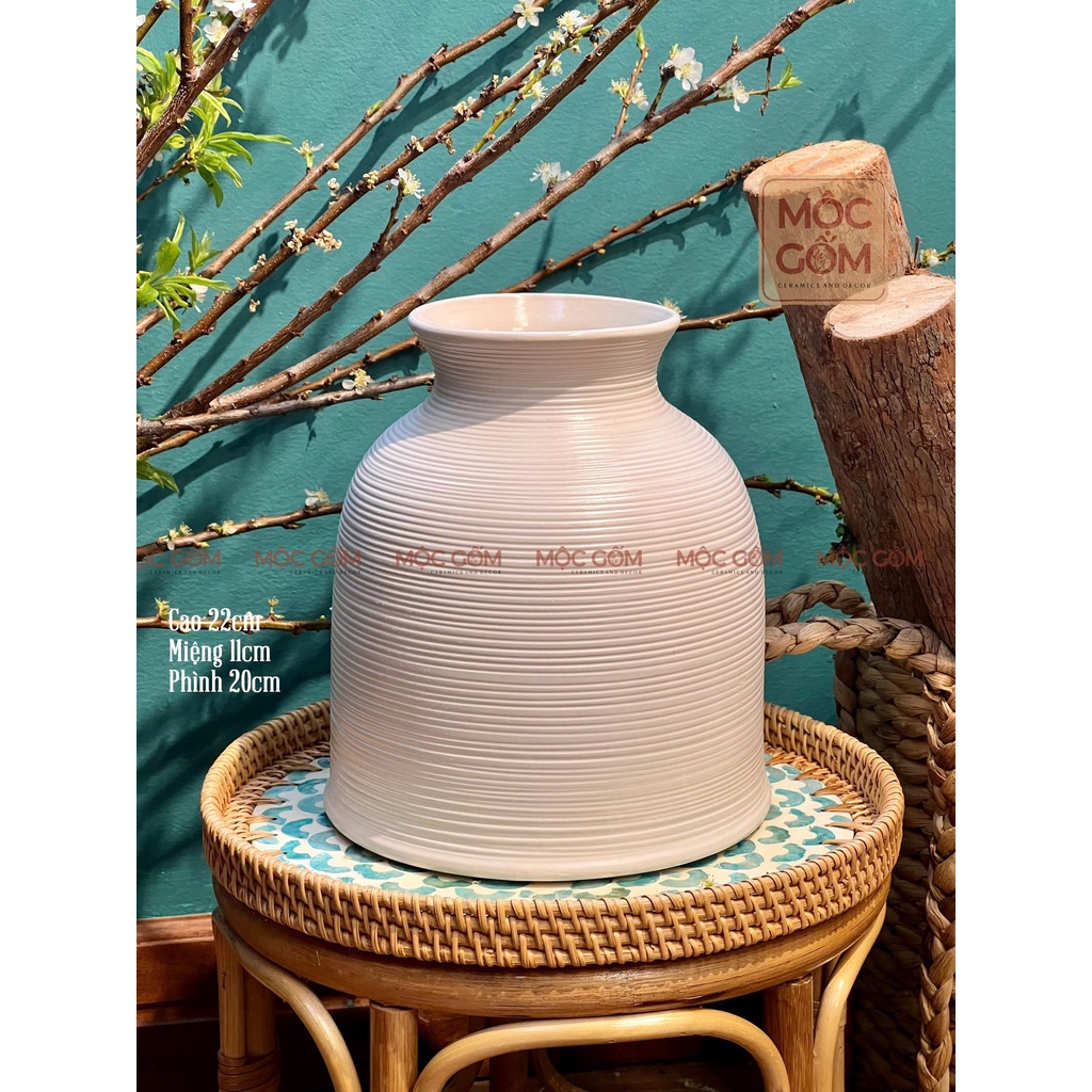 Bình gốm Bát Tràng cắm hoa dáng đầm thân ganh nổi men trắng lỳ trang trí phòng khách đẹp cao cấp Mộc Gốm MG76