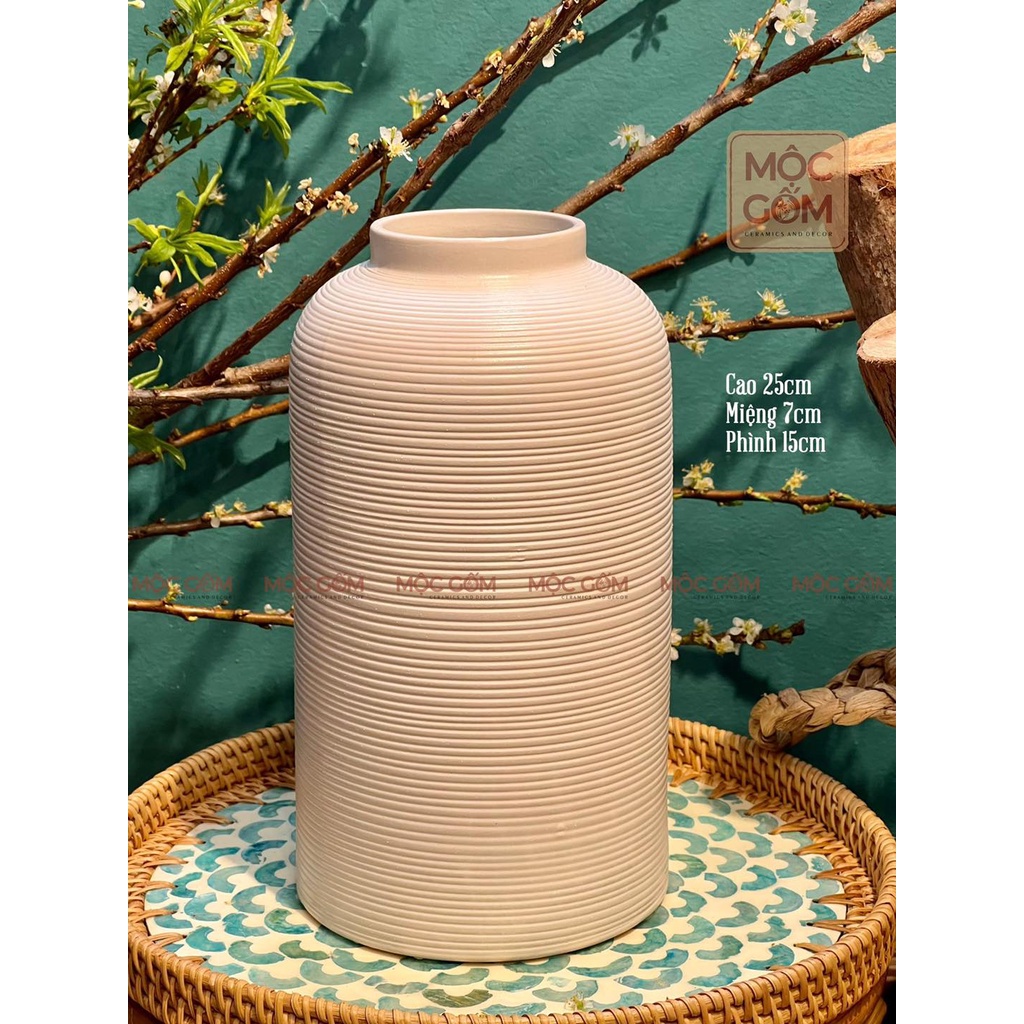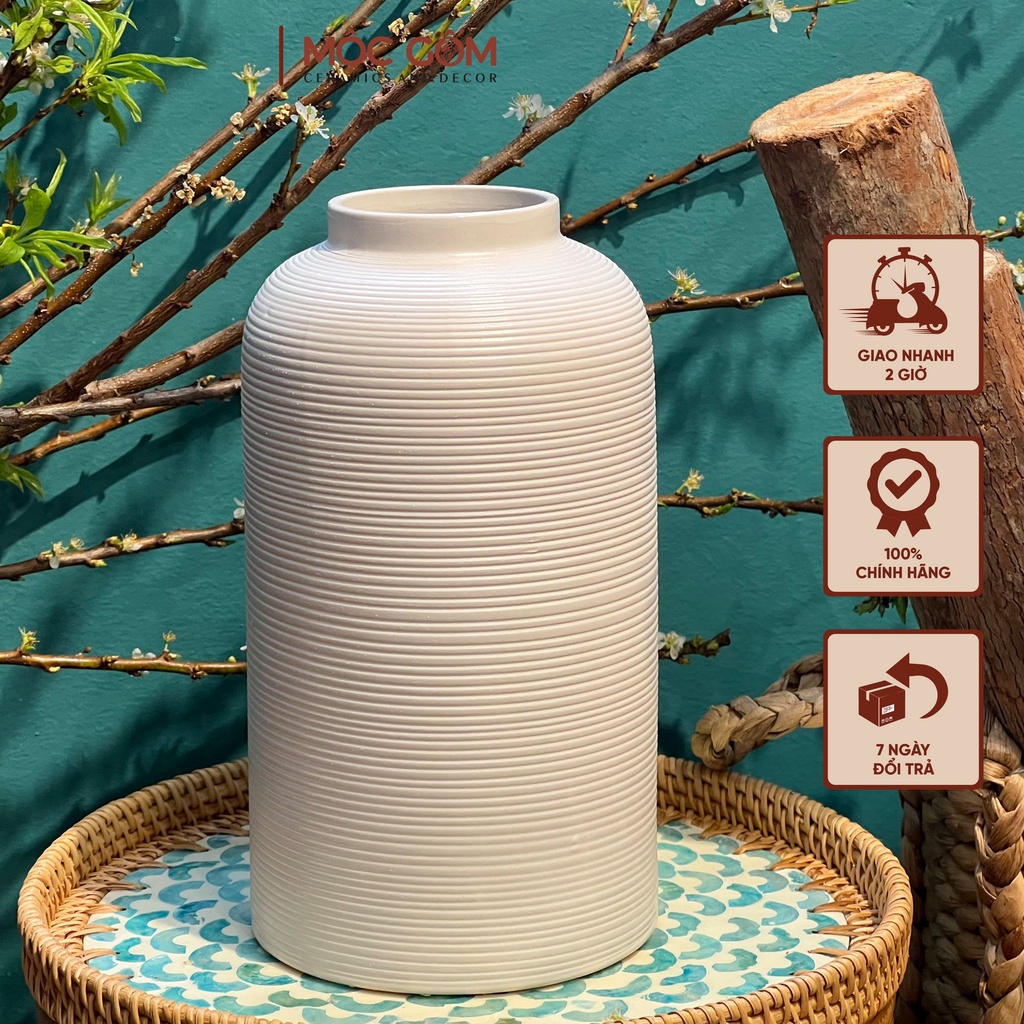 Bình gốm cắm hoa dáng lồng chim men trắng lì ganh vân khía Bát Tràng cao cấp trang trí nội thất đẹp Mộc Gốm MG11