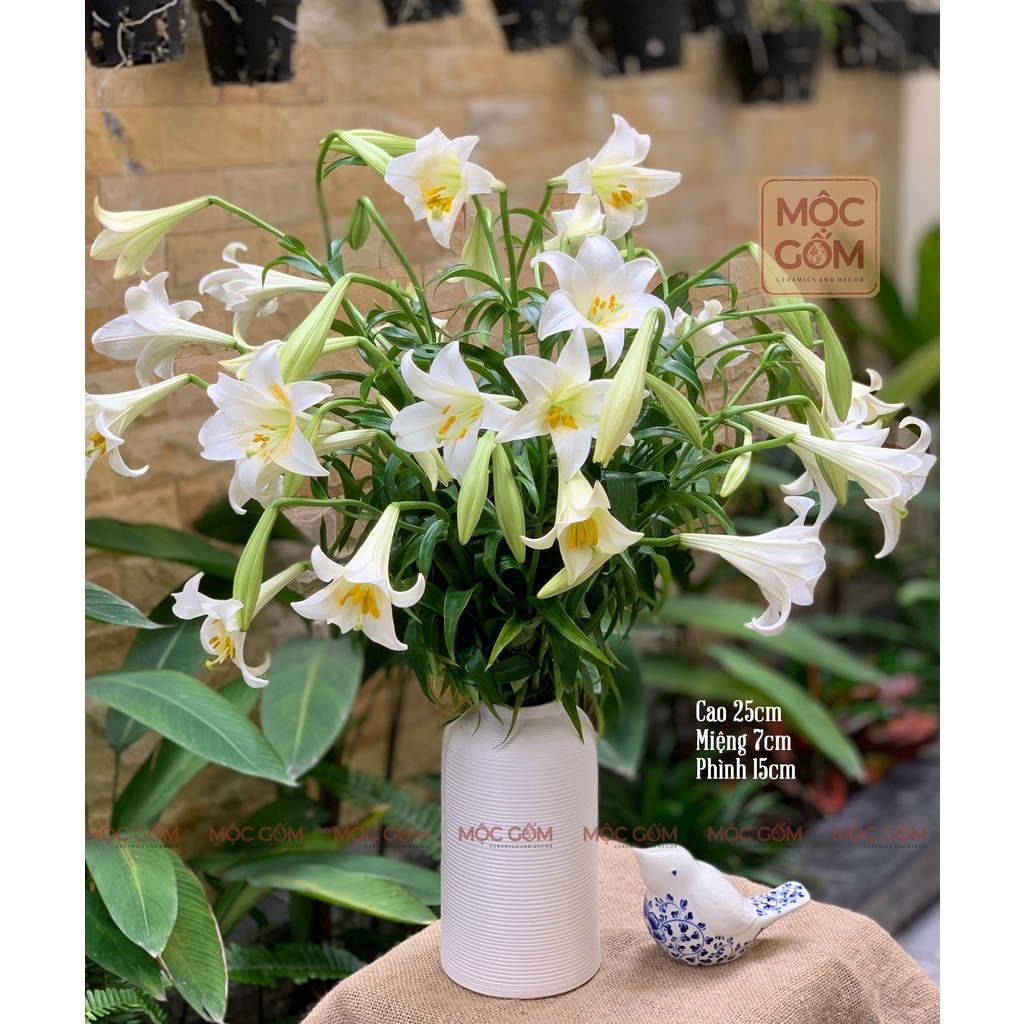 Giới thiệu Bình gốm cắm hoa dáng lồng chim men trắng lì ganh vân khía Bát Tràng cao cấp trang trí nội thất đẹp Mộc Gốm MG11