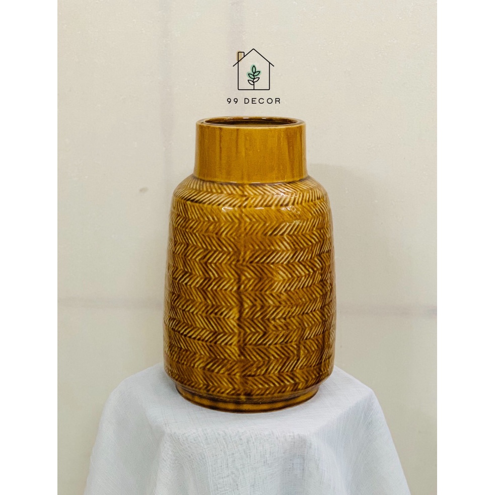 Nhà cửa & Đời sống > Trang trí nhà cửa > Bình trang trí || Bình Gốm Cắm Hoa Men Vàng Nhạt Hoạt Tiết Xương CáCòn hàng