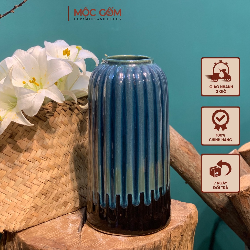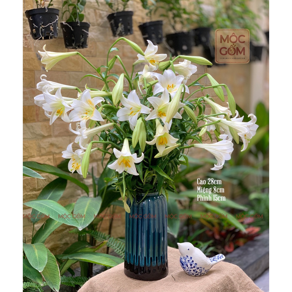 Nhà cửa & Đời sống > Trang trí nhà cửa > Bình trang trí || Bình gốm dáng lồng chim men xanh hỏa biến cao cấp Bát Tràng trang trí nội thất đẹp Mộc Gốm MG18Còn hàng