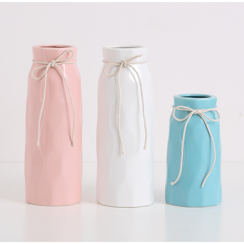 Bình Gốm Thắt Nơ Trang Trí Siêu Xinh BJ062, Bình Lọ Cắm Hoa (xanh, hồng, trắng)