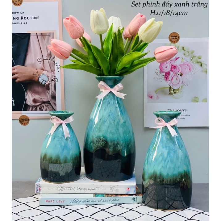 Bình gốm,lọ cắm hoa decor men hoả biến cao cấp(set 3 bình tặng kèm nơ buộc)