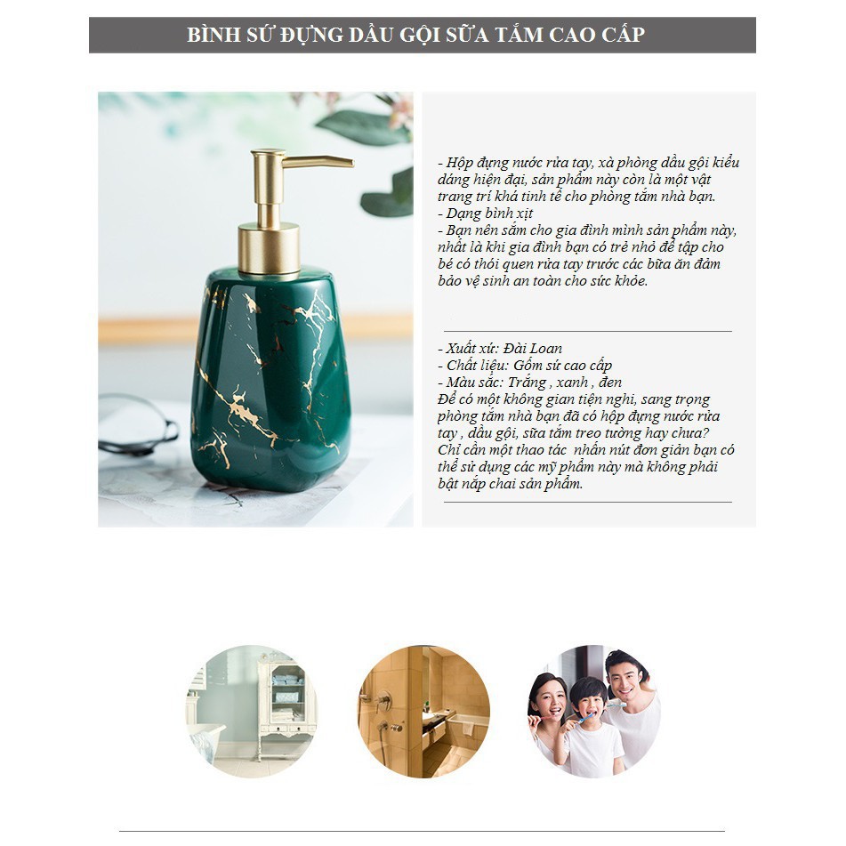 Giới thiệu sản phẩm : Bình Sứ Đựng Dầu Gội Nước Rửa Tay Sữa Tắm Cao Cấp