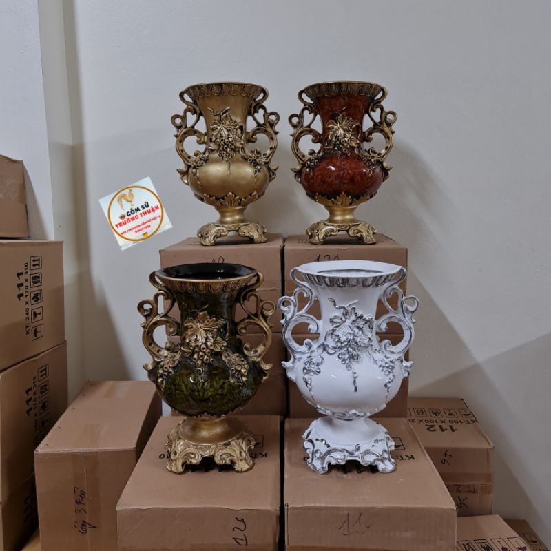 Bình hoa cắm lông công, hoa lua ⚡BAO BỂ VỠ⚡composite dáng cúp số 38 cao 34cm