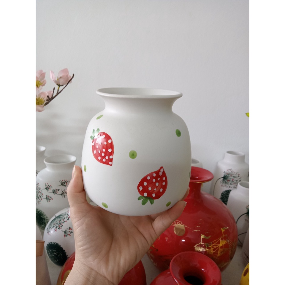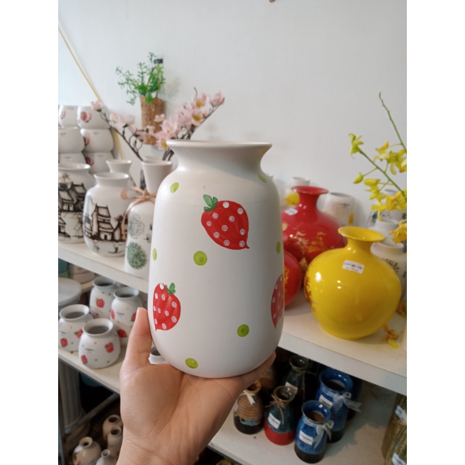 Nhà cửa & Đời sống > Trang trí nhà cửa > Bình trang trí || Bình hoa dâu tây -Lọ hoa gốm sứ vuốt tay vẽ họa tiết thủ công - decor bàn làm việc, phòng khách đẹp mắtCòn hàng