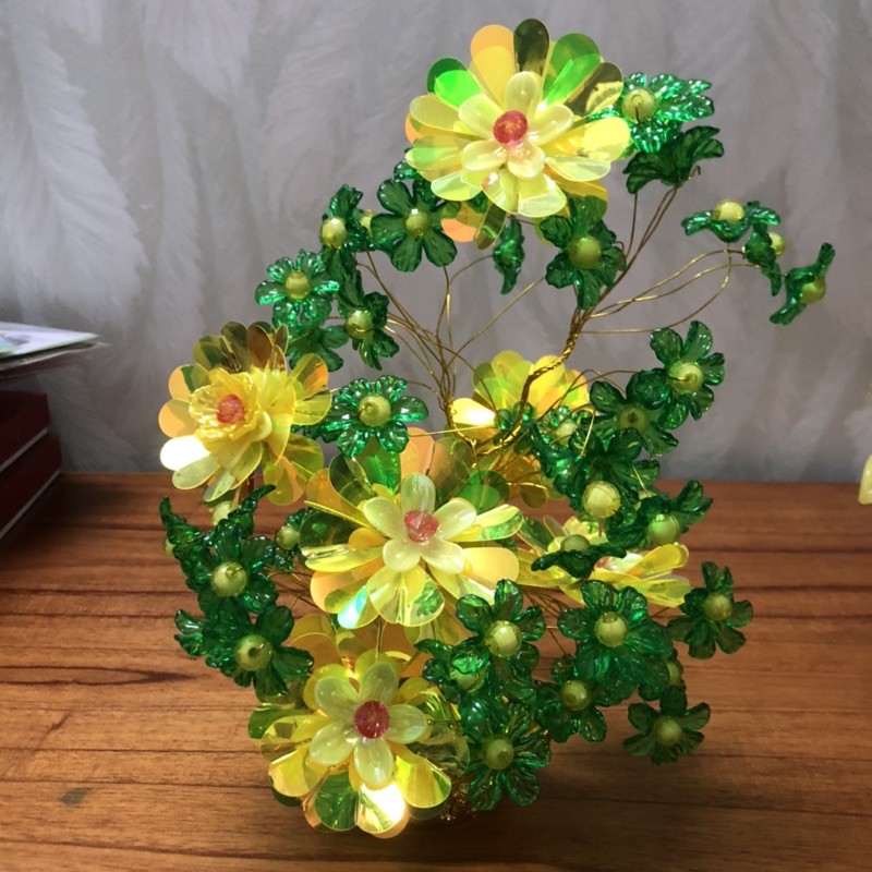 Bình hoa để bàn kết tay thủ công pha lê nhựa và hạt cườm đẹp.Cao 27cm, dùng để trang trí nhà cửa...