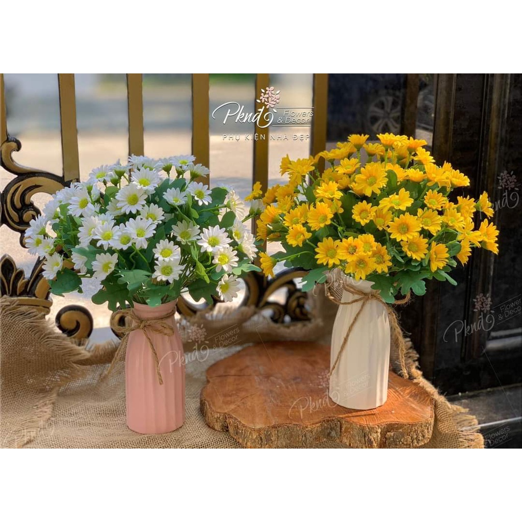 Nhà cửa & Đời sống > Trang trí nhà cửa > Hoa trang trí || [Mã LIFEMALL9944 giảm 50K đơn 99K] Bình hoa giả cúc họa mi lụa để bàn đẹp PKND FLOWER & DECORCòn hàng