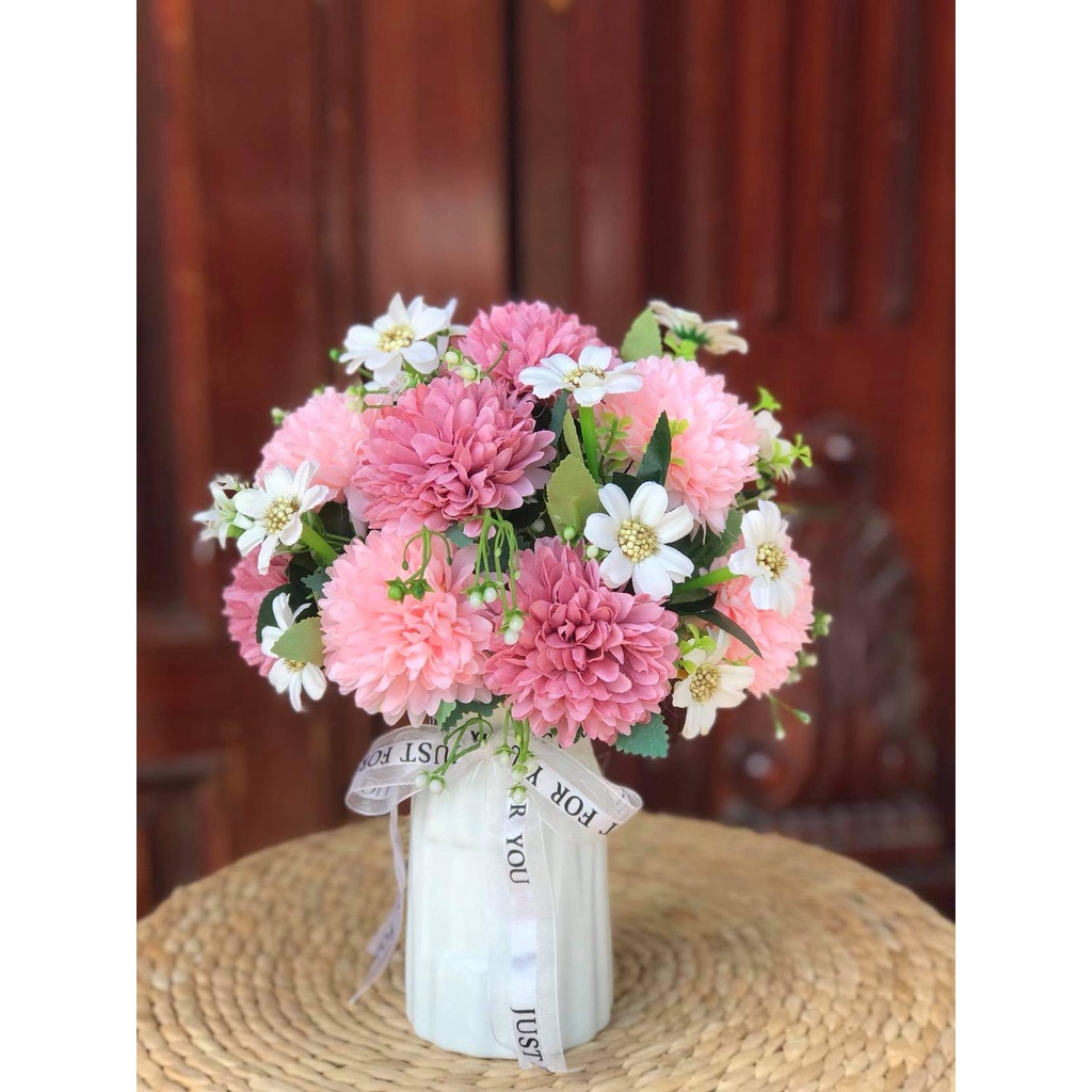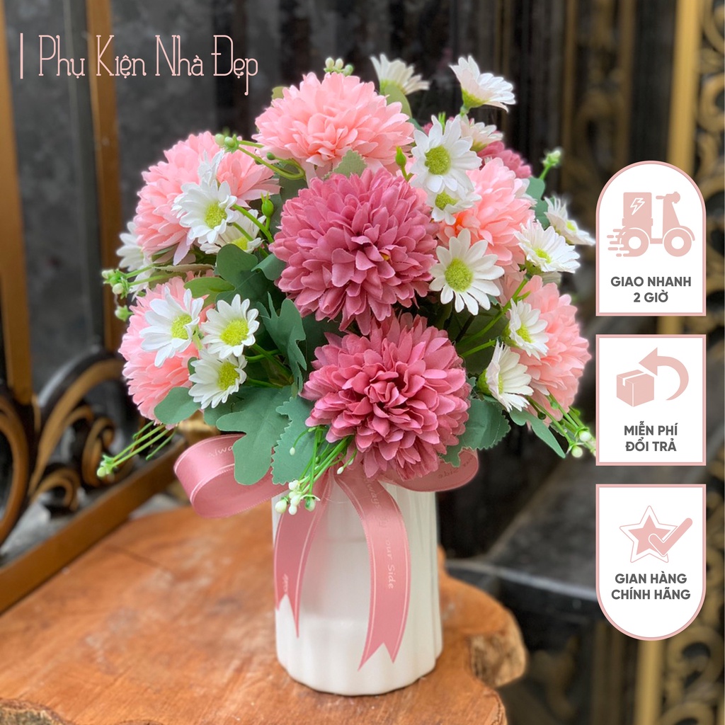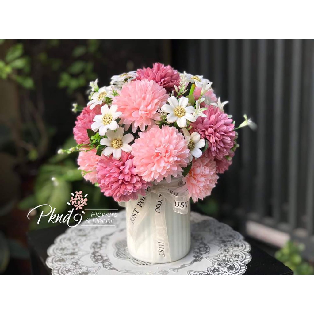 Bình hoa giả cúc pingpong lụa trang trí đẹp PKND FLOWERS & DECOR