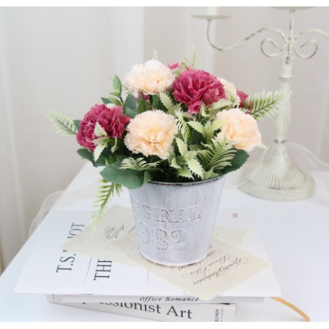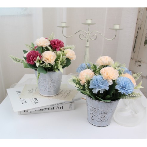 Tên bé: bộ hoa giảVề chất liệu: chậu hoa thiếc, hoa vải lụa