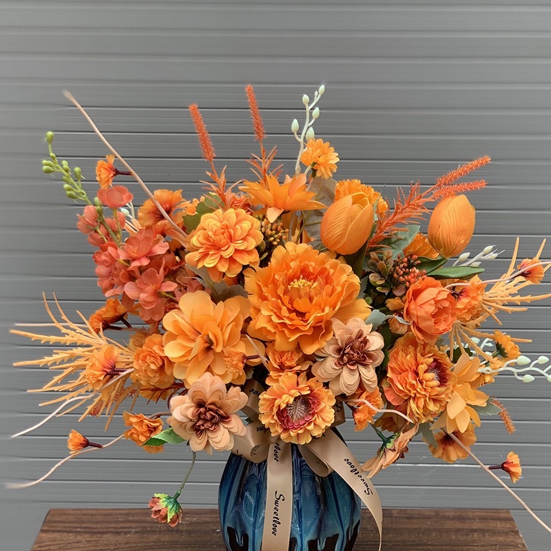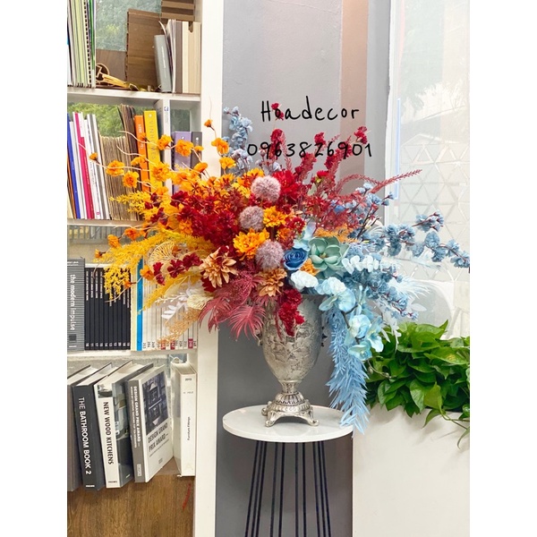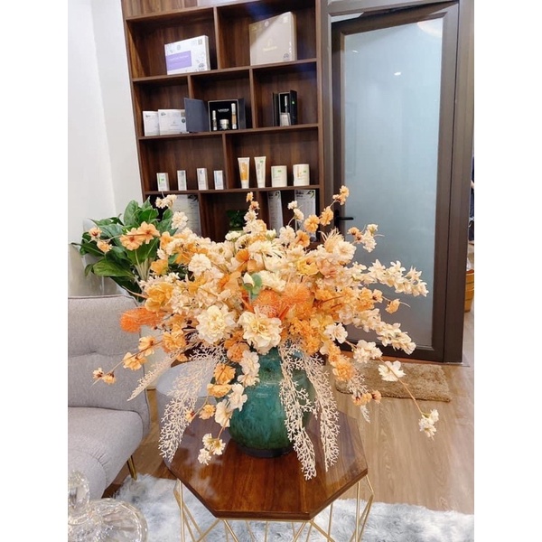 Bình Hoa giả hoa lụa trang trí cao cấp cắm lọ theo phong cách hiện đại, decor phòng chụp, spa, tiệm tóc, nail, quà tặng