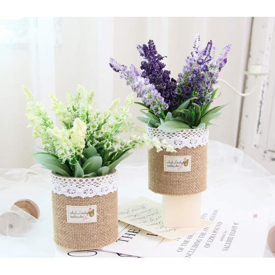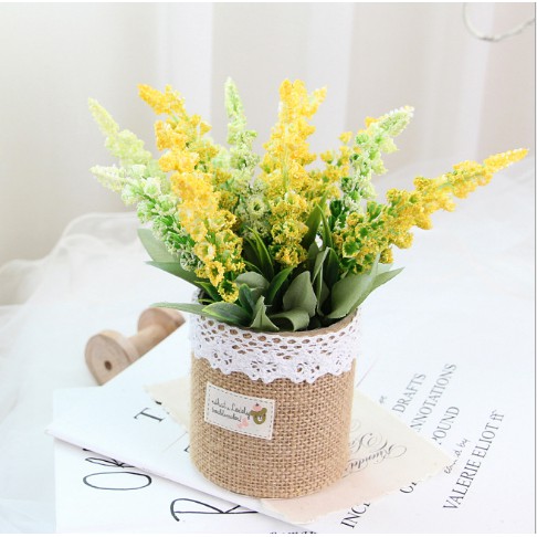 Tên : bộ hoa giảVề chất liệu: túi vải bố chậu hoa, hoa vải lụa nhựa