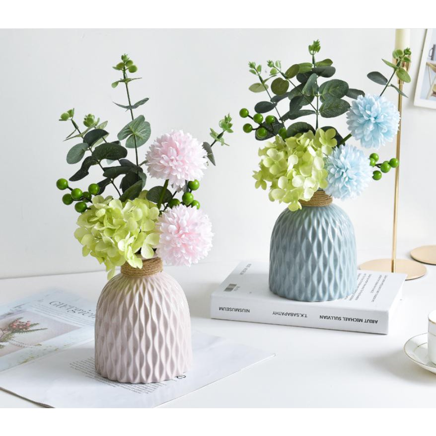 Bình hoa gốm cột dây thừng Bắc Âu cao cấp TC184✔ Thiết kế hiện đại theo phong cách châu Âu với cổ bình quấn thừng.