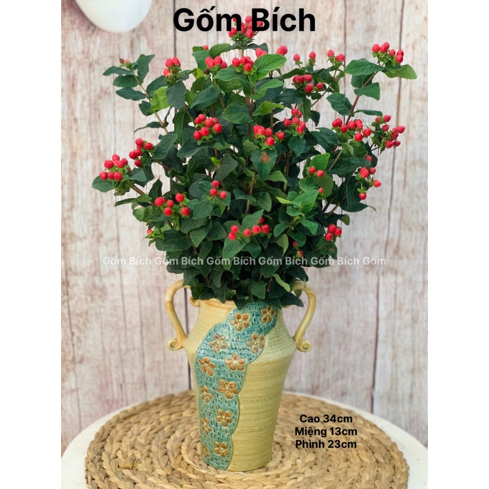 Nhà cửa & Đời sống > Trang trí nhà cửa > Bình trang trí || Bình Hoa Gốm Khắc Tay Men Thuần Mộc Gốm Sứ Bát Tràng Lọ Hoa Đẹp - Gốm BíchCòn hàng