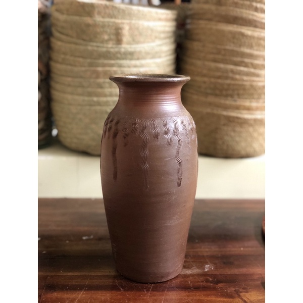 Bình hoa gốm sành thủ công, hàng vuốt tay không tráng men.