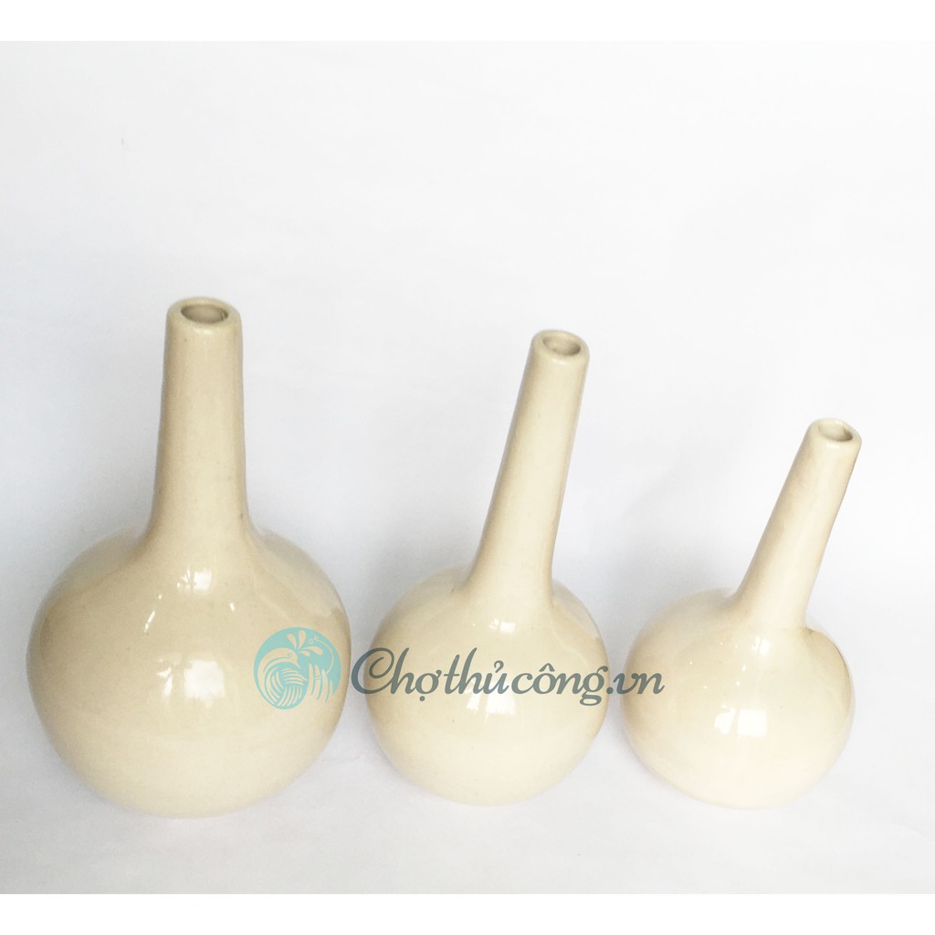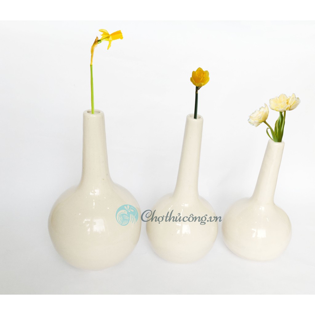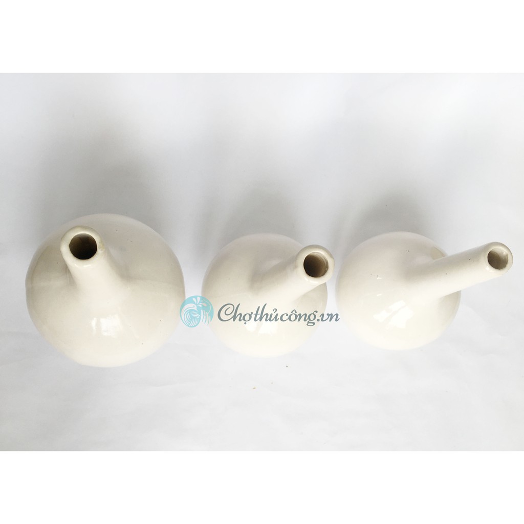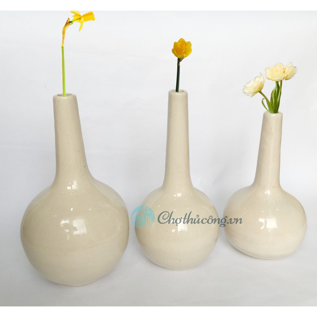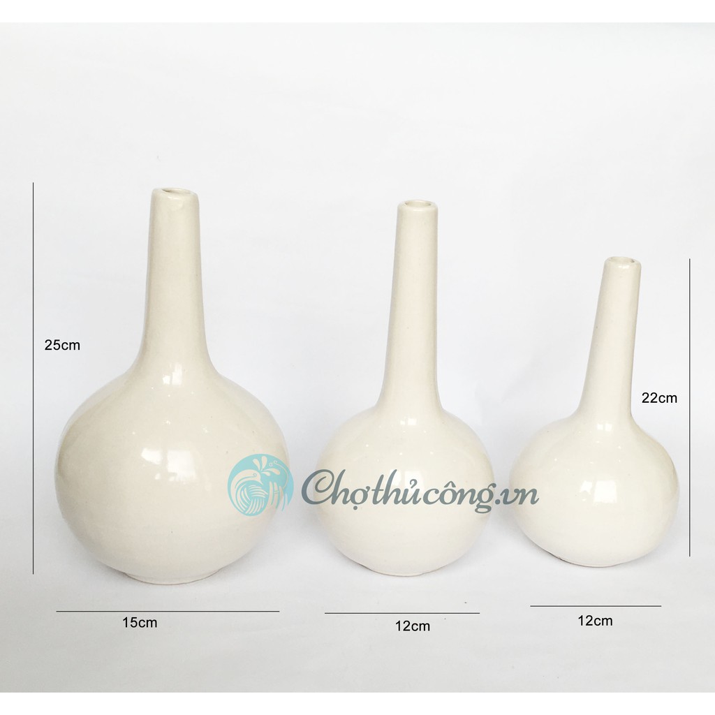 Set 3 Bình hoa gốm sứ dáng tròn cổ lọ cao, men sứ cao cấp cắm Hoa, trang trí (3 size) C25xR15cm