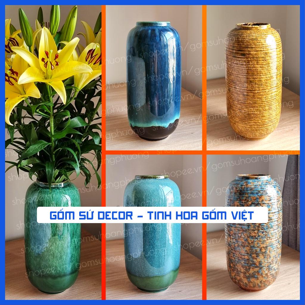 Nhà cửa & Đời sống > Trang trí nhà cửa > Bình trang trí || Bình hoa gốm sứ cao 29cm dáng trụ men hỏa biến - Bát TràngCòn hàng