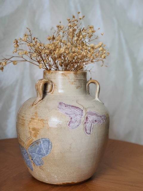 Bình hoa gốm sứ vuốt tay đắp nổi nghệ thuật