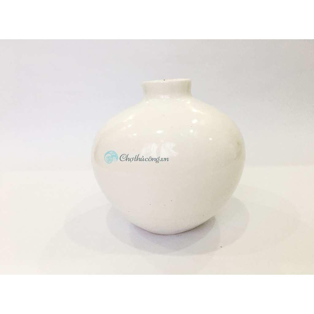 Bình hoa gốm trang trí men sứ cao cấp tròn cổ lọ cắm Hoa để bàn, trang trí C16xR18cm (miệng 4cm) (trắng/nâu đen/rêu)