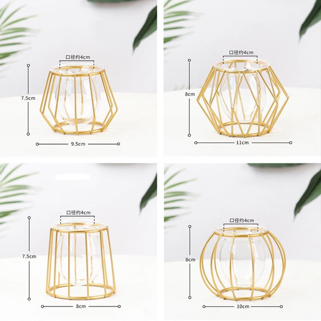 Bình hoa hình khối phong cách Bắc Âu có thiết kế hiện đại với giá đỡ kim loại đơn giản nhưng cuốn hút, cắm hoa trong 1 ống nghiệm hình trụ và giá đỡ hình học được thiết kế đẹp mắt, là điểm nhấn trang trí cho ngôi nhà của bạn.- Lọ hoa đơn giản phù hợp để cắm hoa tươi nghệ thuật, các nhánh hoa hồng, hoa lan,cây sen đá. Ngoài ra cũng phù hợp để đựng hỗn hợp nến thơm, phụ kiện trang trí bên trong lọ, ngọc trai, đá quý, lụa, hoa khô hoặc hoa giả.