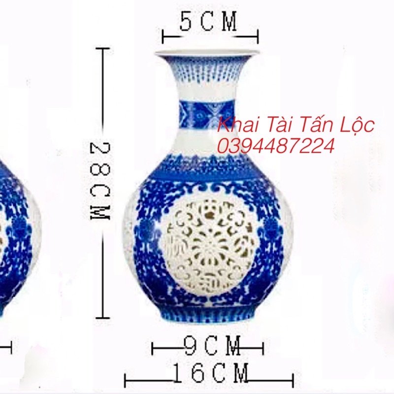 - Kích thước: cao 28 cm , rộng 16 cm , đường kính miệng 5 cm , đường kính đáy 9 cm ( đo lường thủ công )