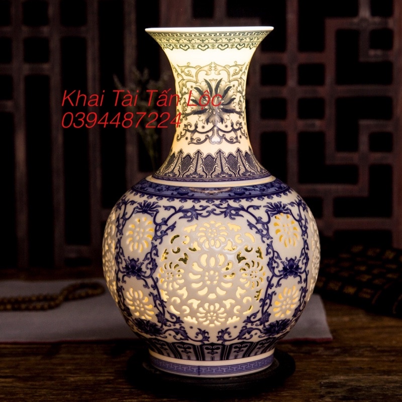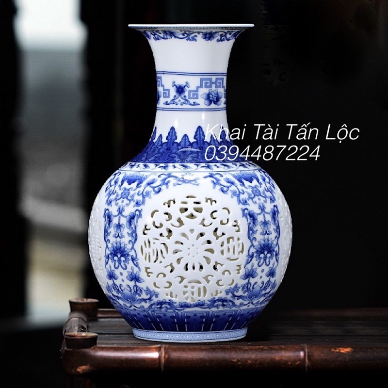 Nhà cửa & Đời sống > Trang trí nhà cửa > Bình trang trí || Bình hoa men lam chạm khắc thời Ung Chính giả cổCòn hàng