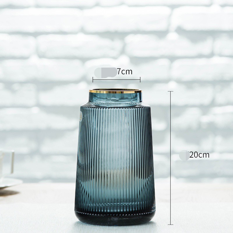 Nhà cửa & Đời sống > Trang trí nhà cửa > Bình trang trí || Bình Hoa Thủy Tinh Cao Cấp Trang Trí Decor Cắm Hoa Để Bàn Đà Nẵng | MAY Decor Trụ Sọc CC Viền VàngCòn hàng