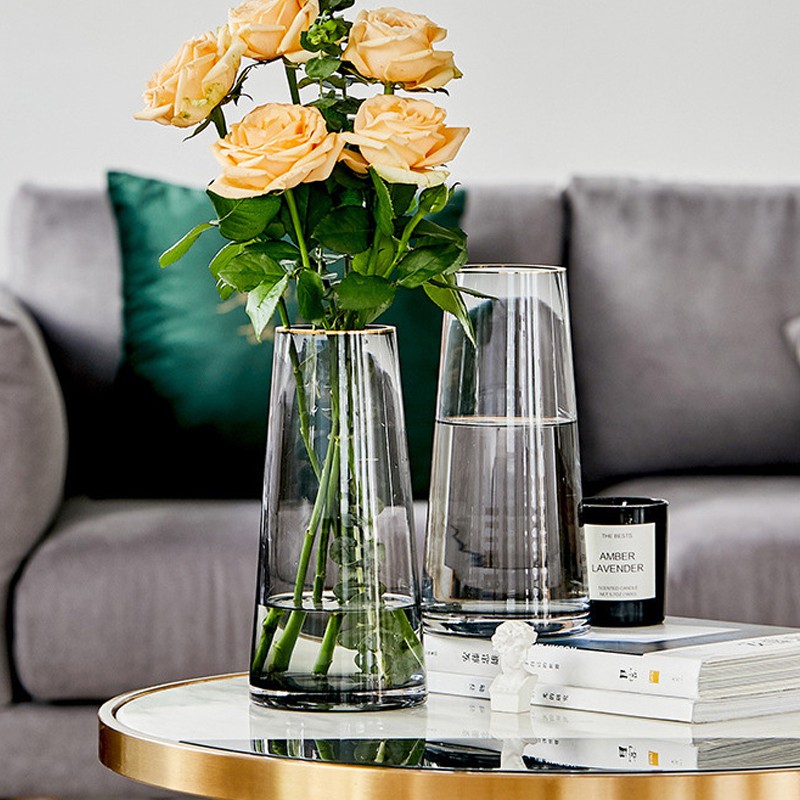 Màu sắc trong suốt kết hợp với viền vàng nhỏ quanh miệng bình sẽ mang đến một cái nhìn mới mẻ, bắt mắt cho không gian trang trí bàn nghệ thuật.