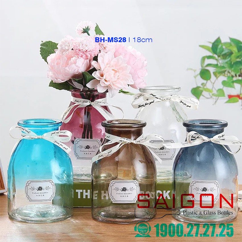 Giới thiệu Bình Hoa Thủy tinh nhiều màu sắc cao 18cm | BH-MS28