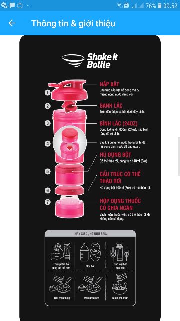 Chất liệu: Thân bình, nắp vặn, bóng lắc: Nhựa PP, Nắp đậy bằng nhựa PE