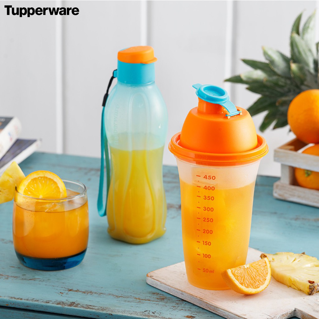 Nhà cửa & Đời sống > Bộ đồ bàn ăn > Bình nước & phụ kiện || Bộ bình lắc Shake N Go Tupperware 500ml nhựa nguyên sinh trộn đều thức uống có vạch chia dung tíchCòn hàng