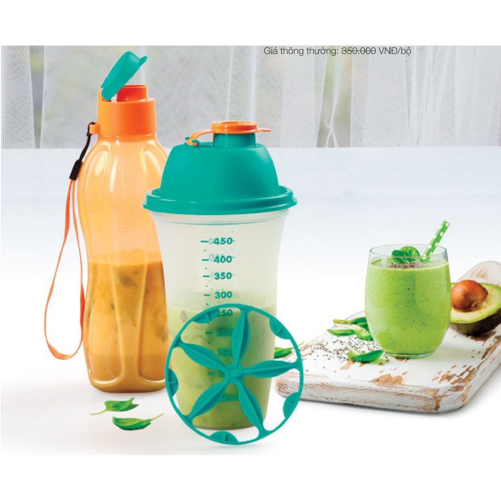 Giới thiệu Bộ bình lắc Shake N Go Tupperware 500ml nhựa nguyên sinh trộn đều thức uống có vạch chia dung tích