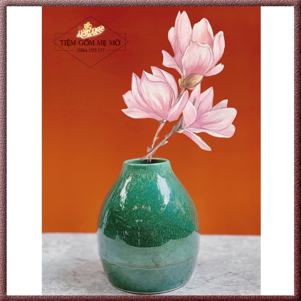 Bình Lọ cắm hoa trang trí decor nhỏ xinh men hoả biến dáng nụ hồng gốm sứ Bát Tràng