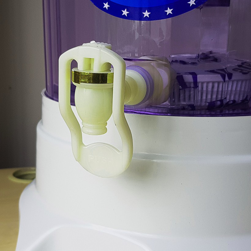 - Gạc xuống bằng cách ấn cốc vào vòi và nước tự động chảy ra, khi lấy ly ra thì nước tự đóng lại an toàn.