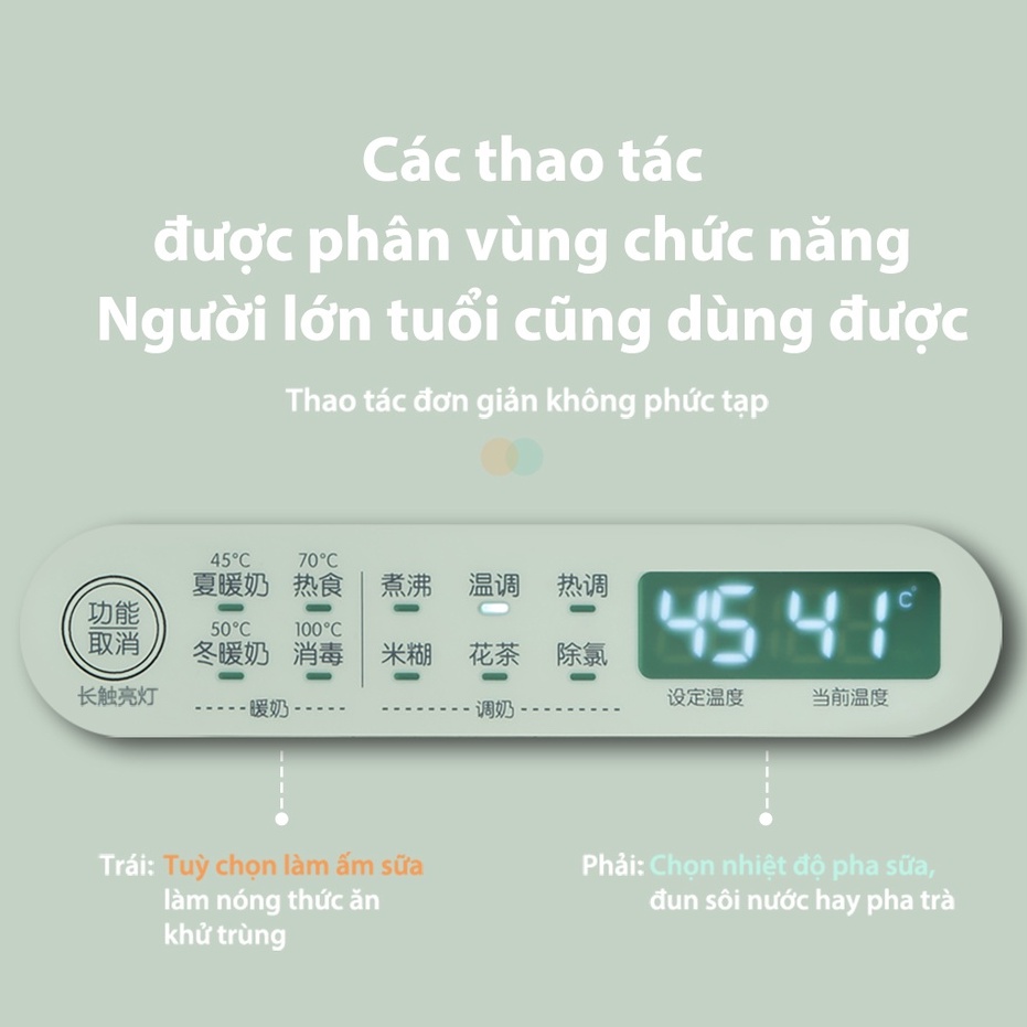 • Tích hợp đèn ngủ không còn lo ngại việc pha sữa vào ban đêm nữa.