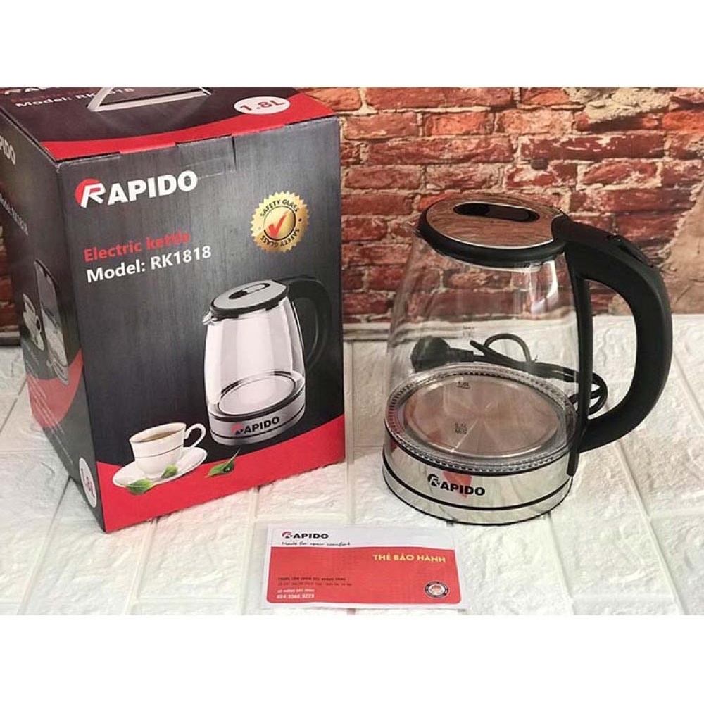 Bình nấu nước siêu tốc RAPIDO RK1818, ấm đun nước thủy tinh dung tích 1,8 lít, tiết kiệm điện độ bền cao SELL SMART